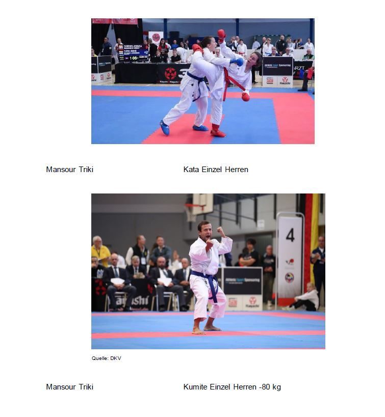 - Mohamed Mansour Triki zum 1. Platz Kumite Masterklasse 35 Männlich und 1.Platz Kata Einzeln Masterklasse 35/45 Männlich